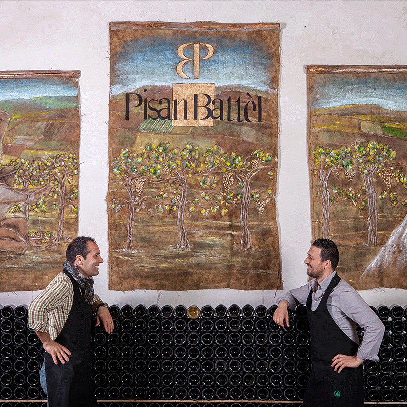Nel 2017 Antonio Pisante e Leonardo Battello hanno dato vita alla Cantina Pisan Battèl, frutto di esperienza, conoscenza e grande intesa. Il Bombino Bianco, vitigno autoctono di grande caratura, ci regala tre differenti consistenze con il Brut, il Pas dosè 30 mesi e il Pas Dosè 48 mesi, spumanti di grande piacevolezza, complessità e bevibilità, che temono il confronto con le bollicine di altre zone d'Italia e del mondo.